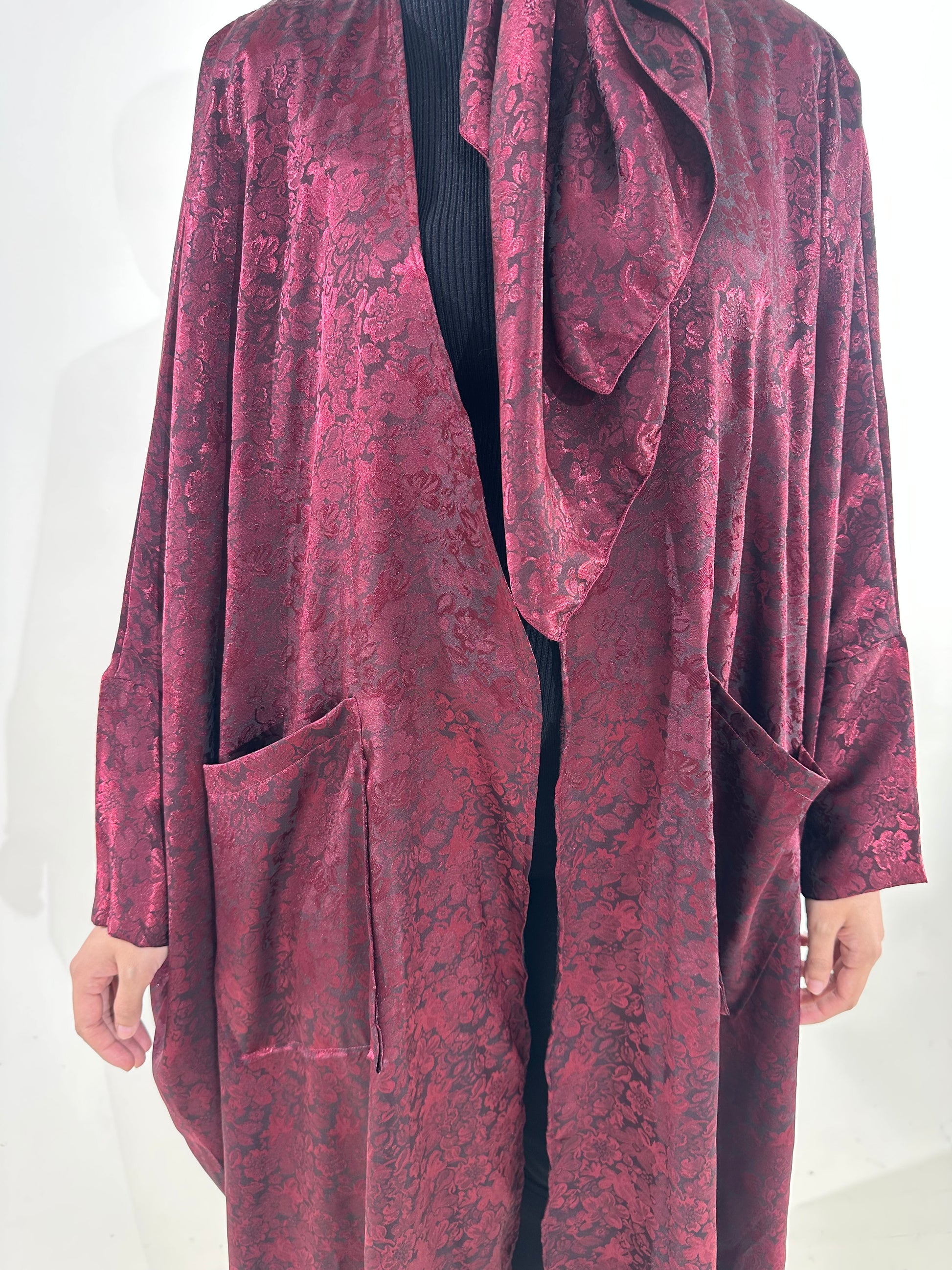 ● BURGANDY SELF PRINTED 2 PIECE ABAYA SET