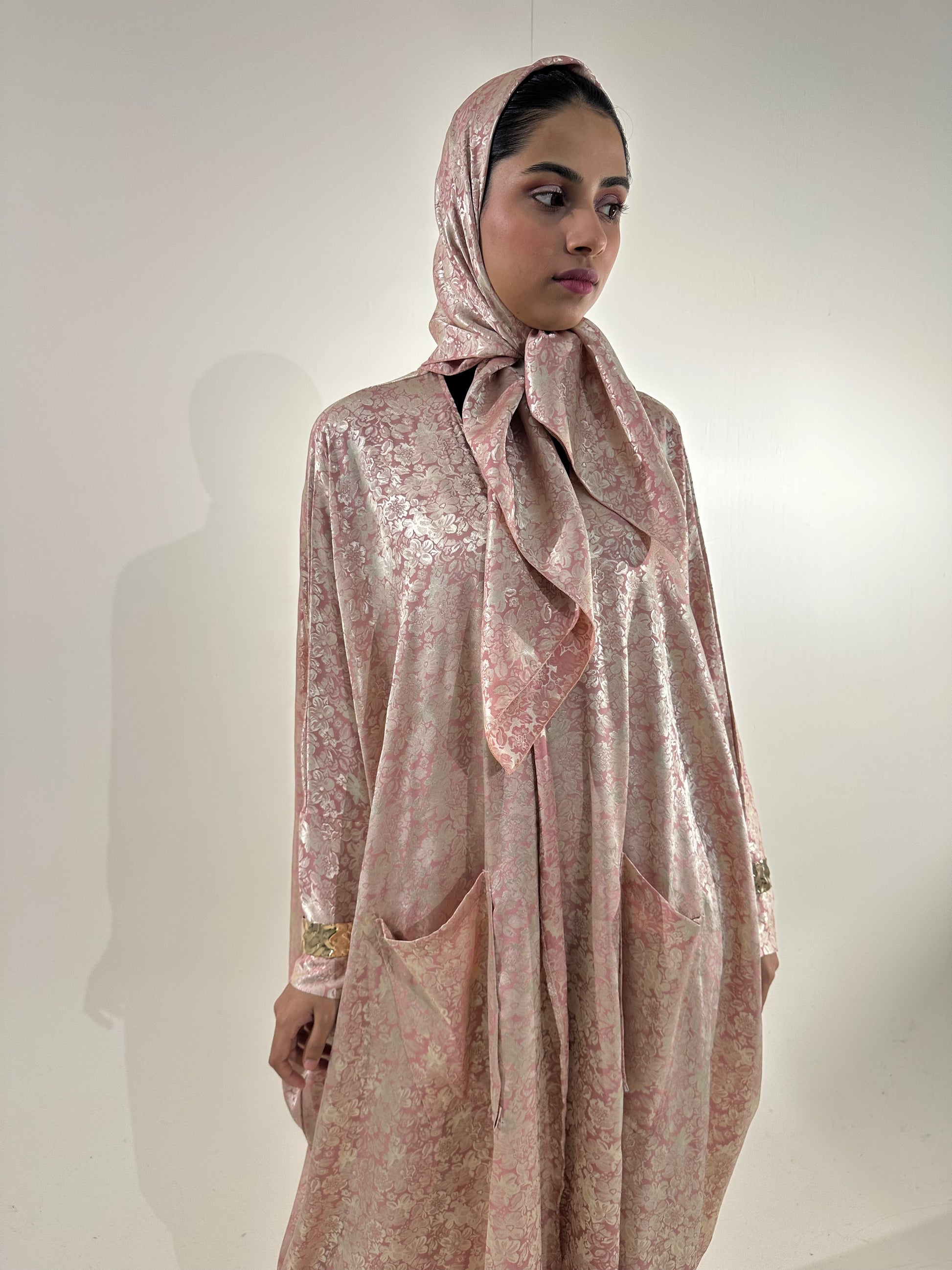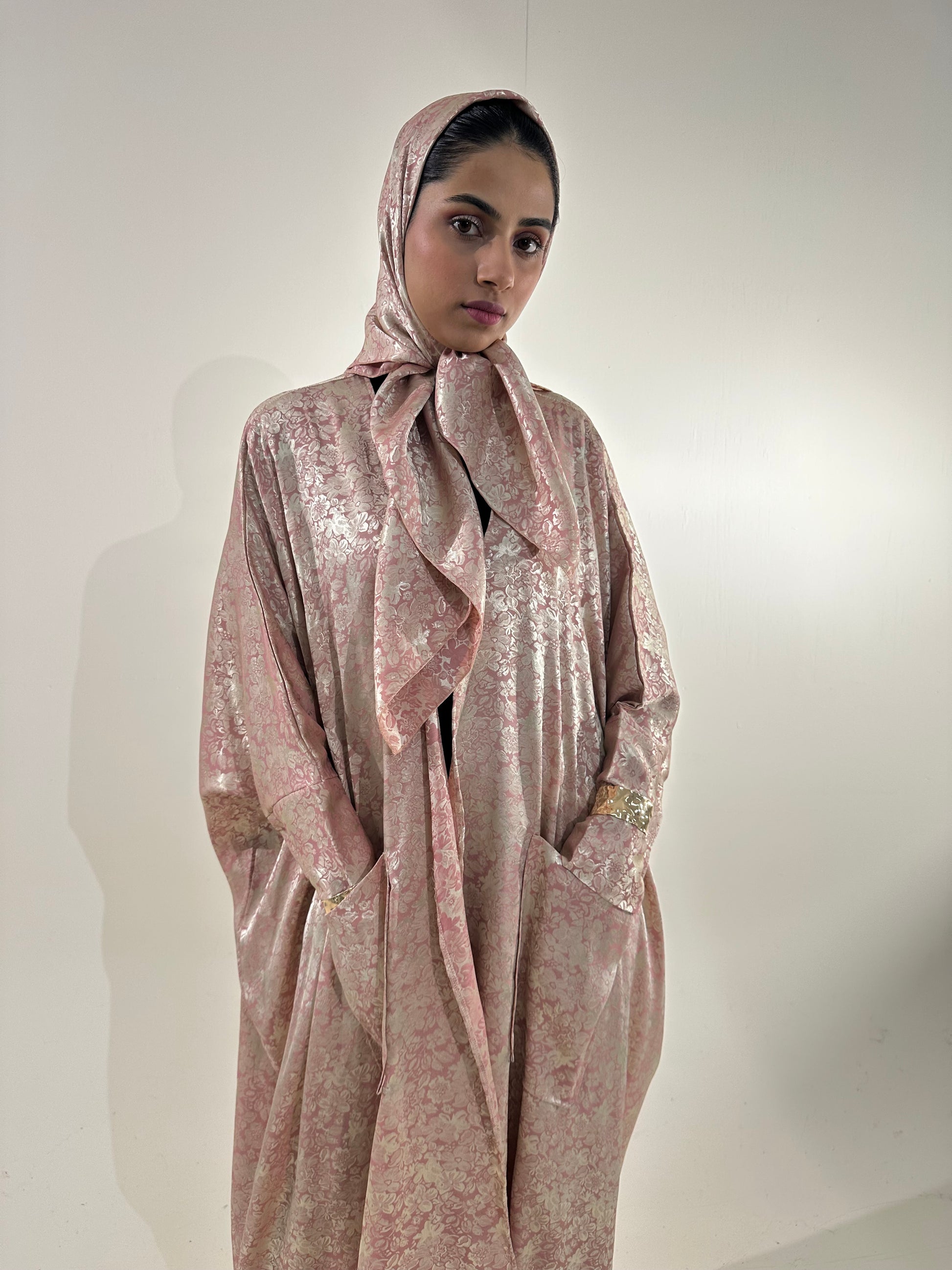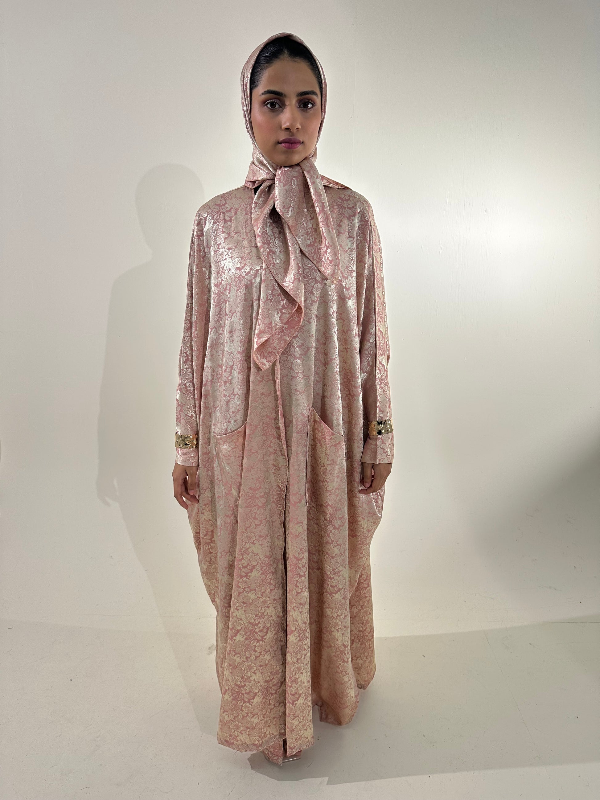 ● SOFT PINK SELF PRINTED 2 PIECE ABAYA SET
