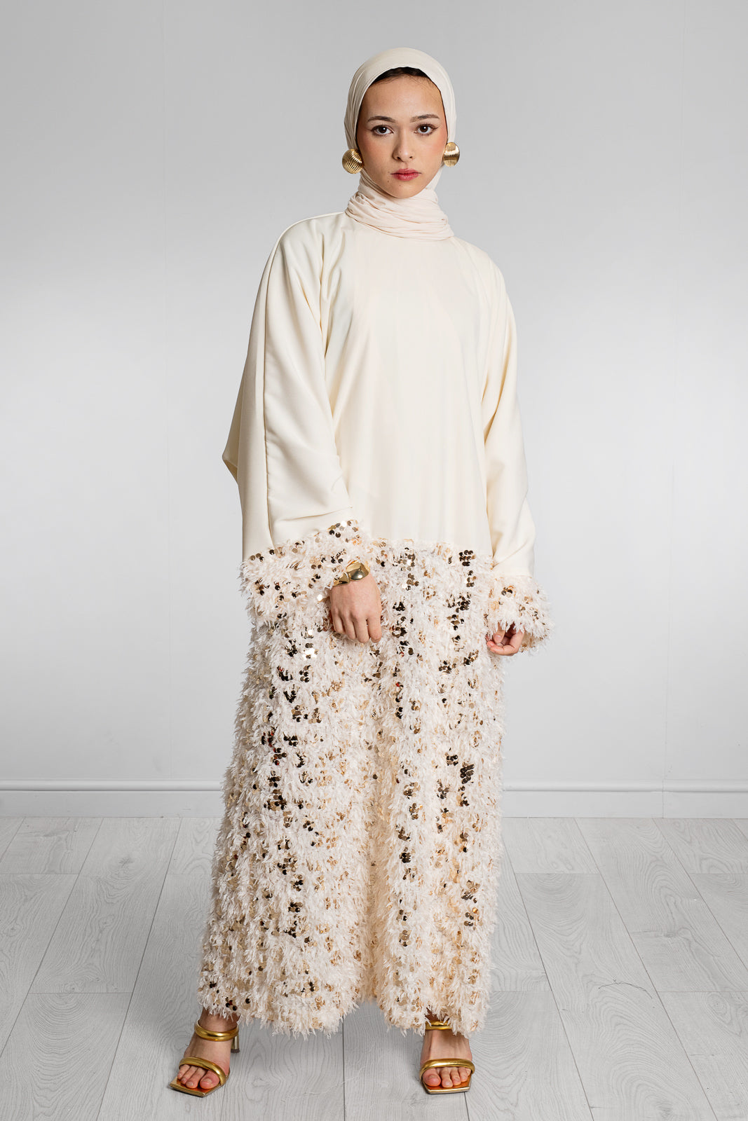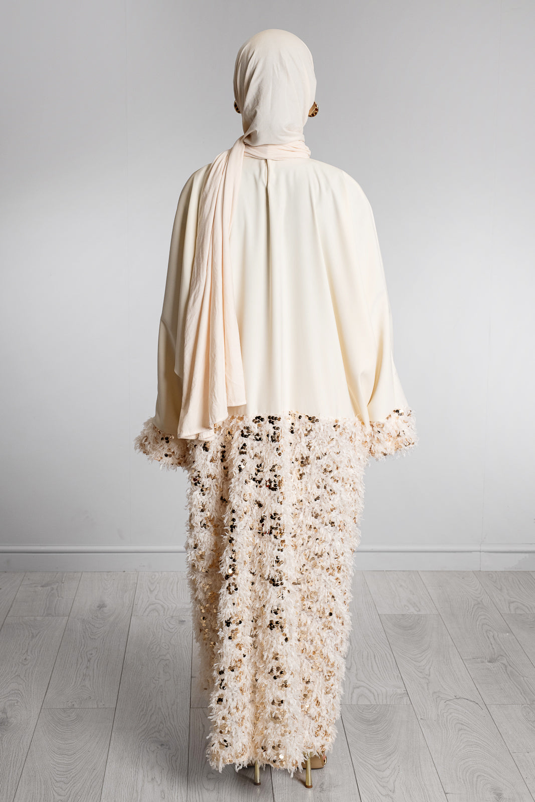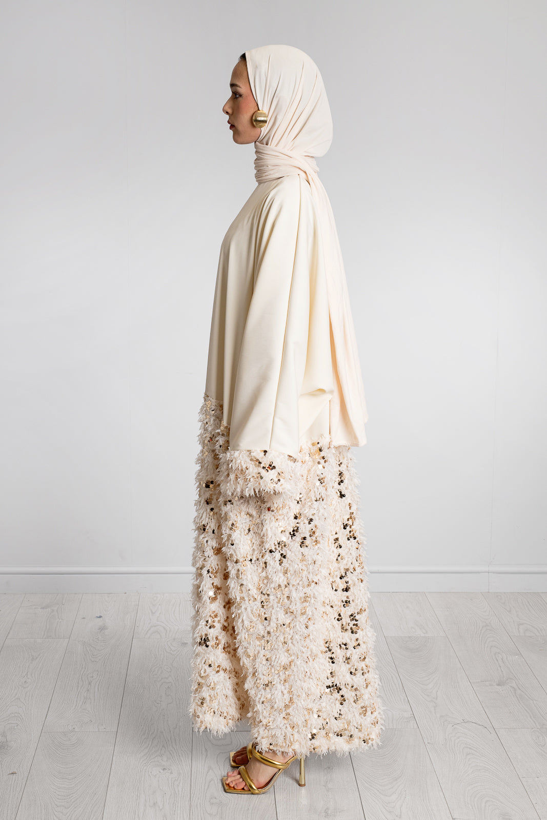 - CREAM WITH TEXTURED FABRIC WITH GOLD SEQUINS