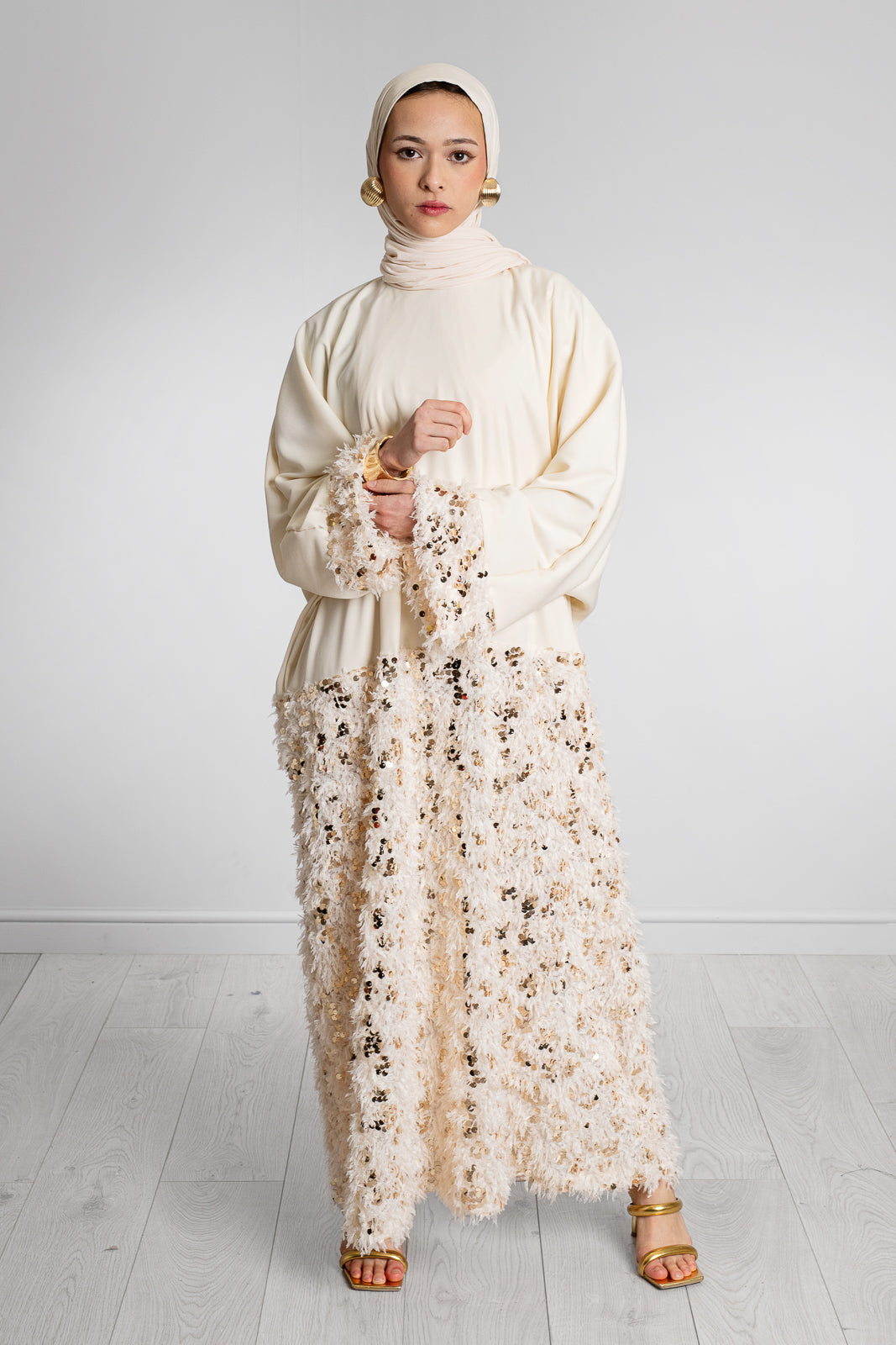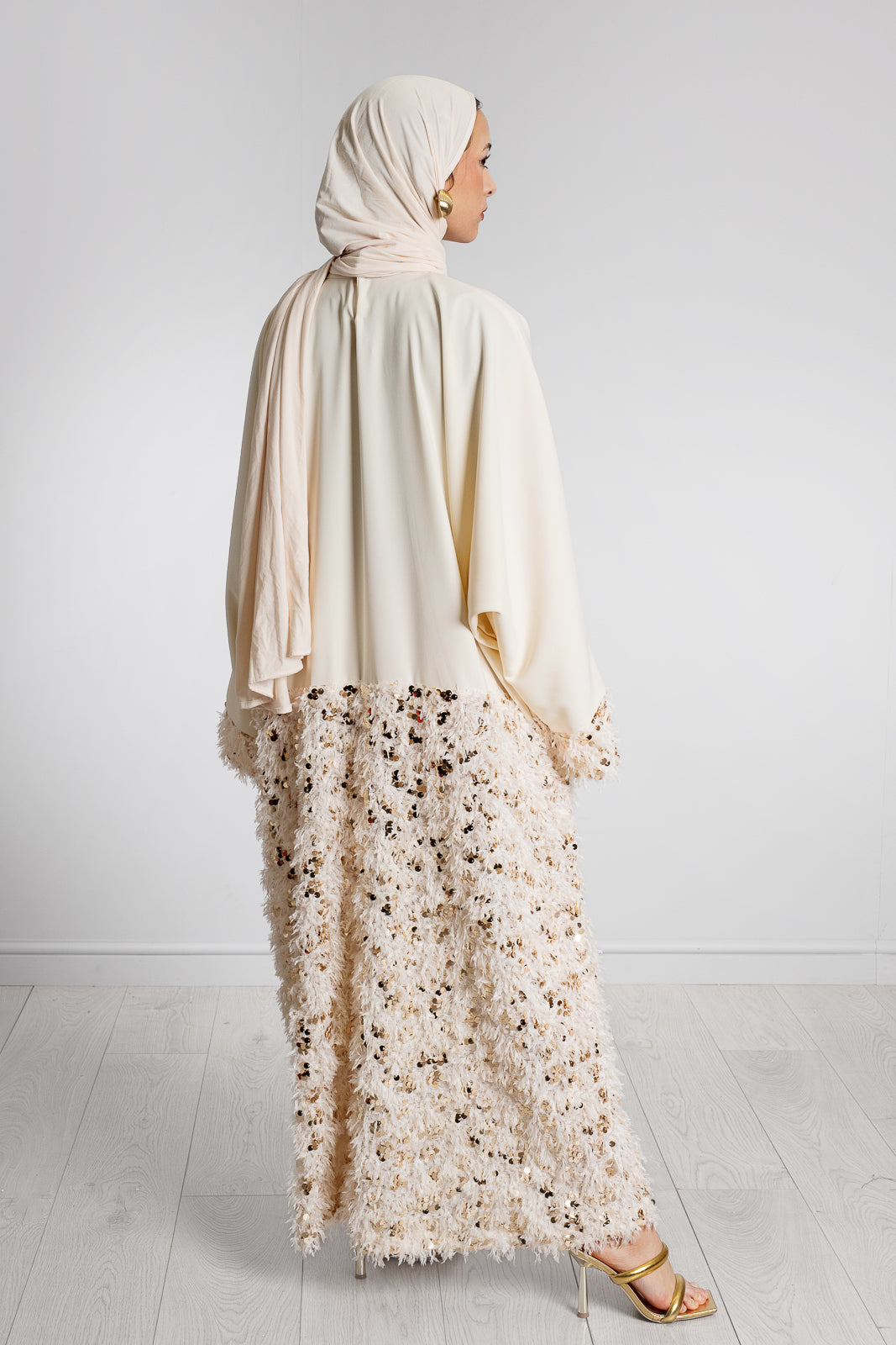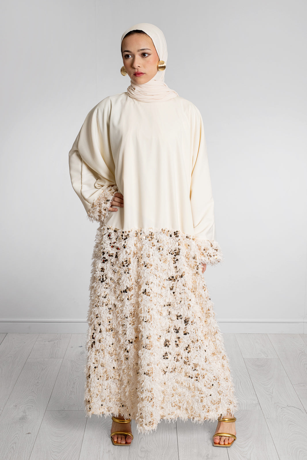 - CREAM WITH TEXTURED FABRIC WITH GOLD SEQUINS