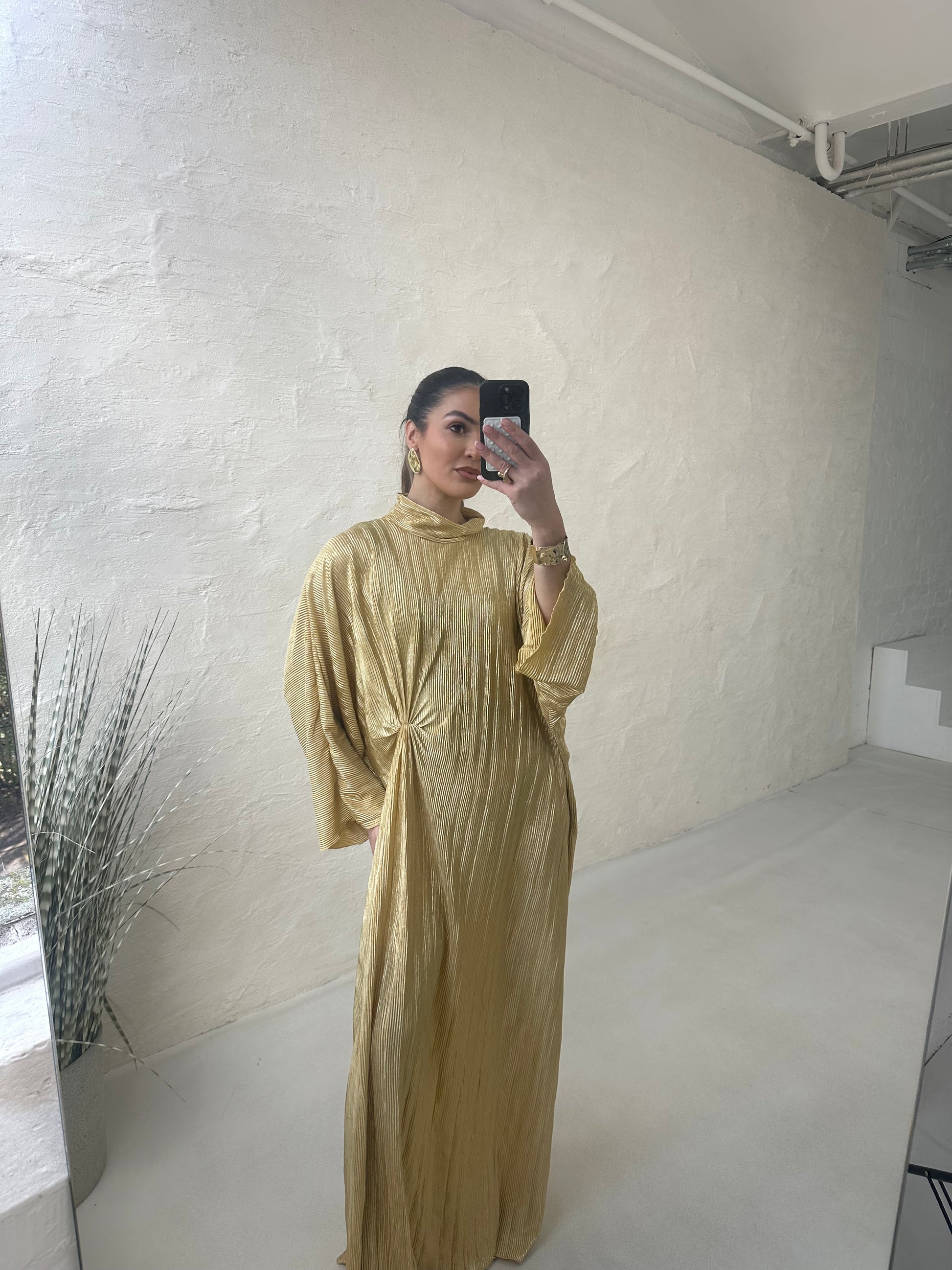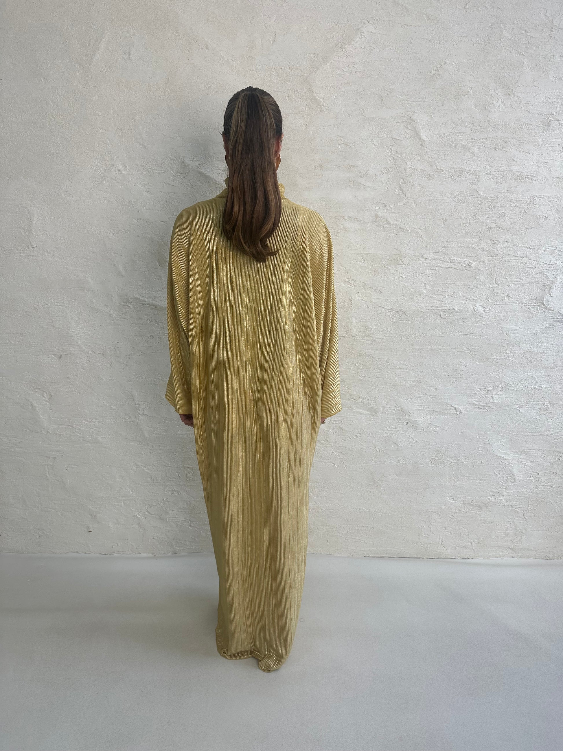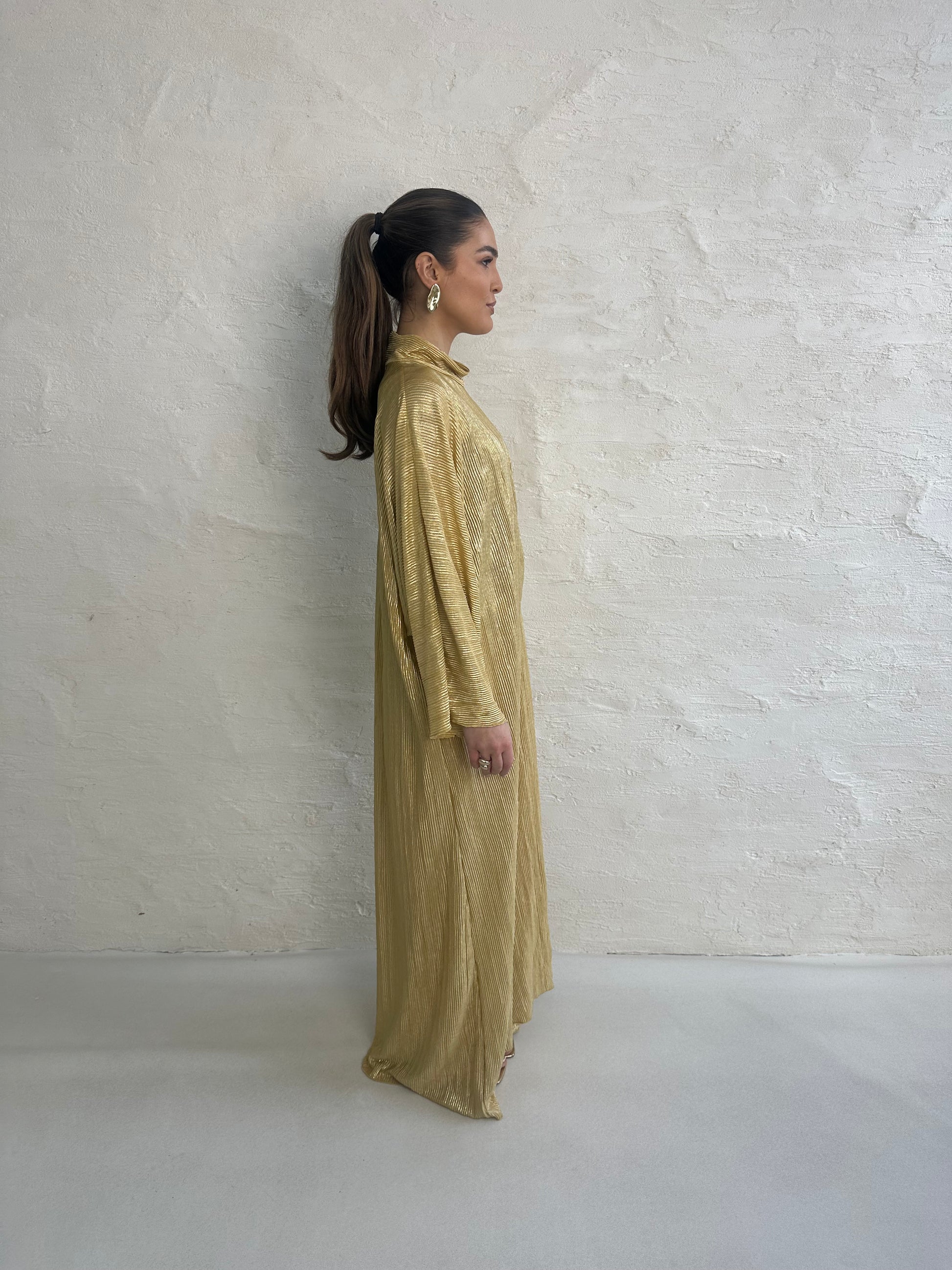 ● METALLIC LEMON PLISSE KNOT DRESS