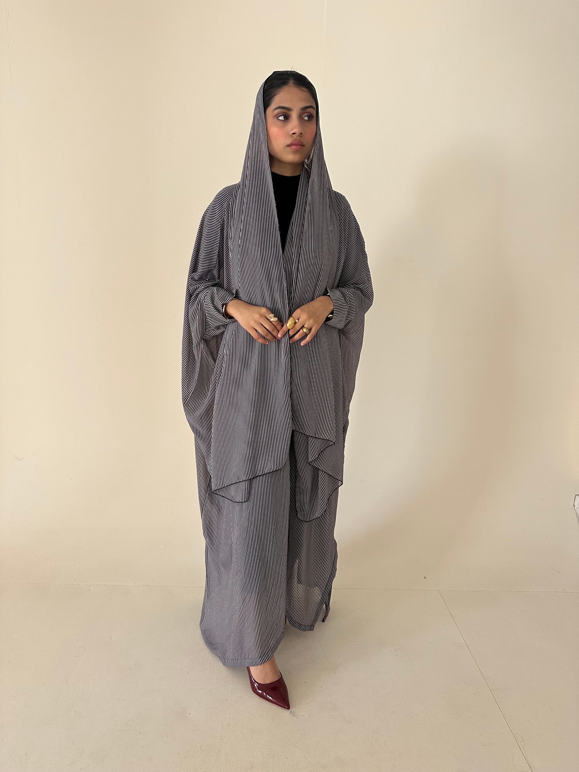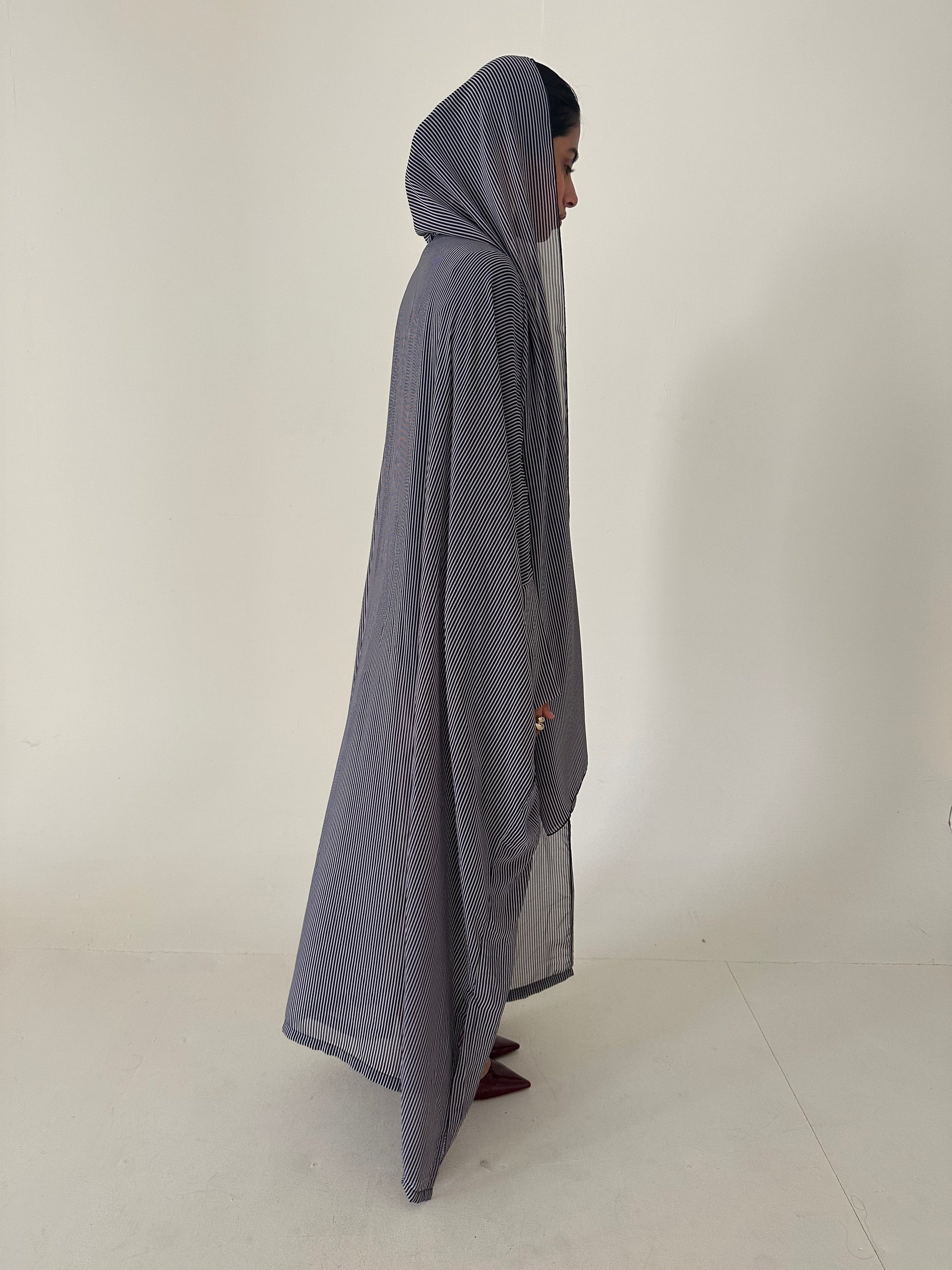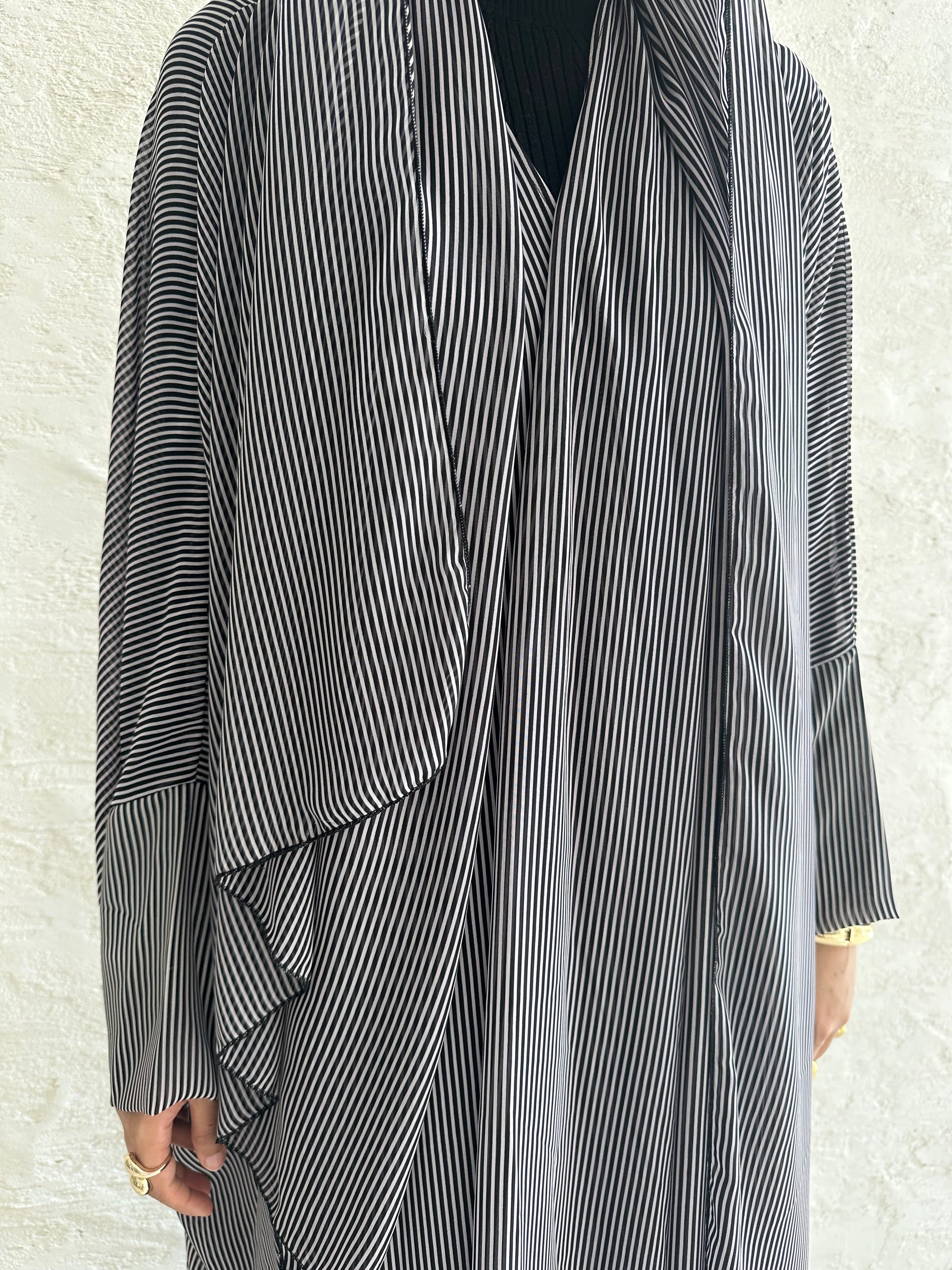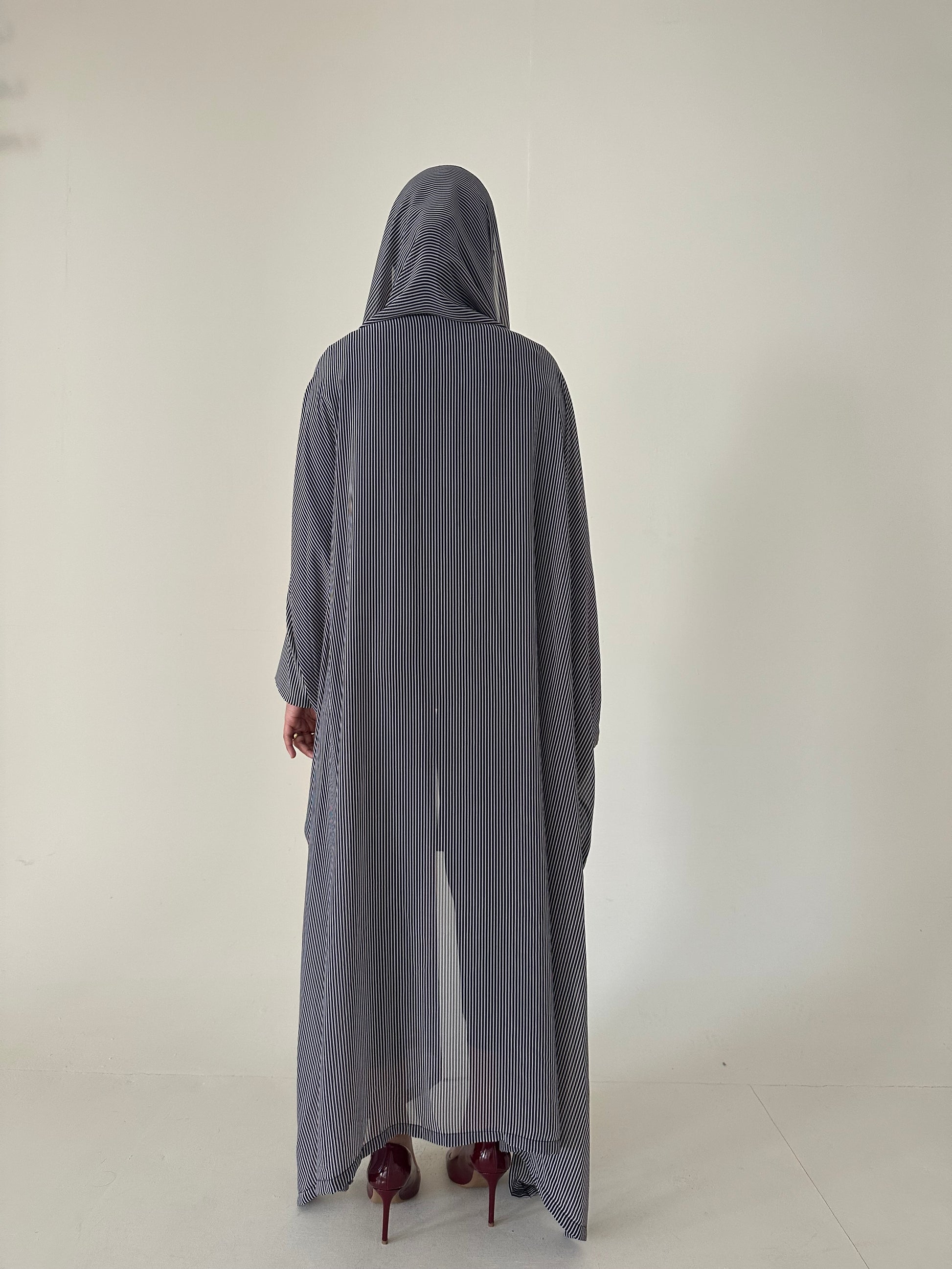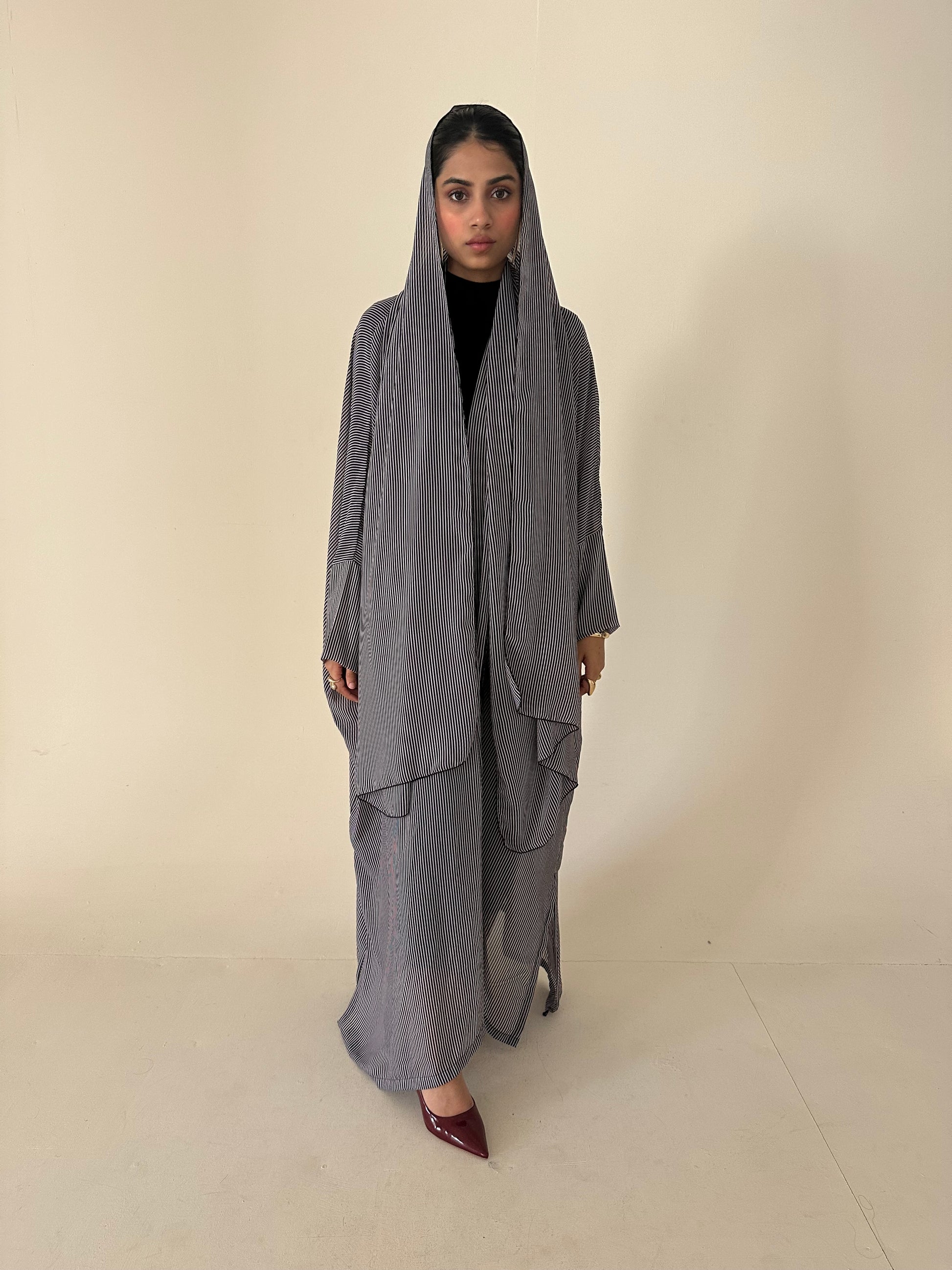 ● BLACK AND WHITE PINSTRIPED 2 PIECE ABAYA SET