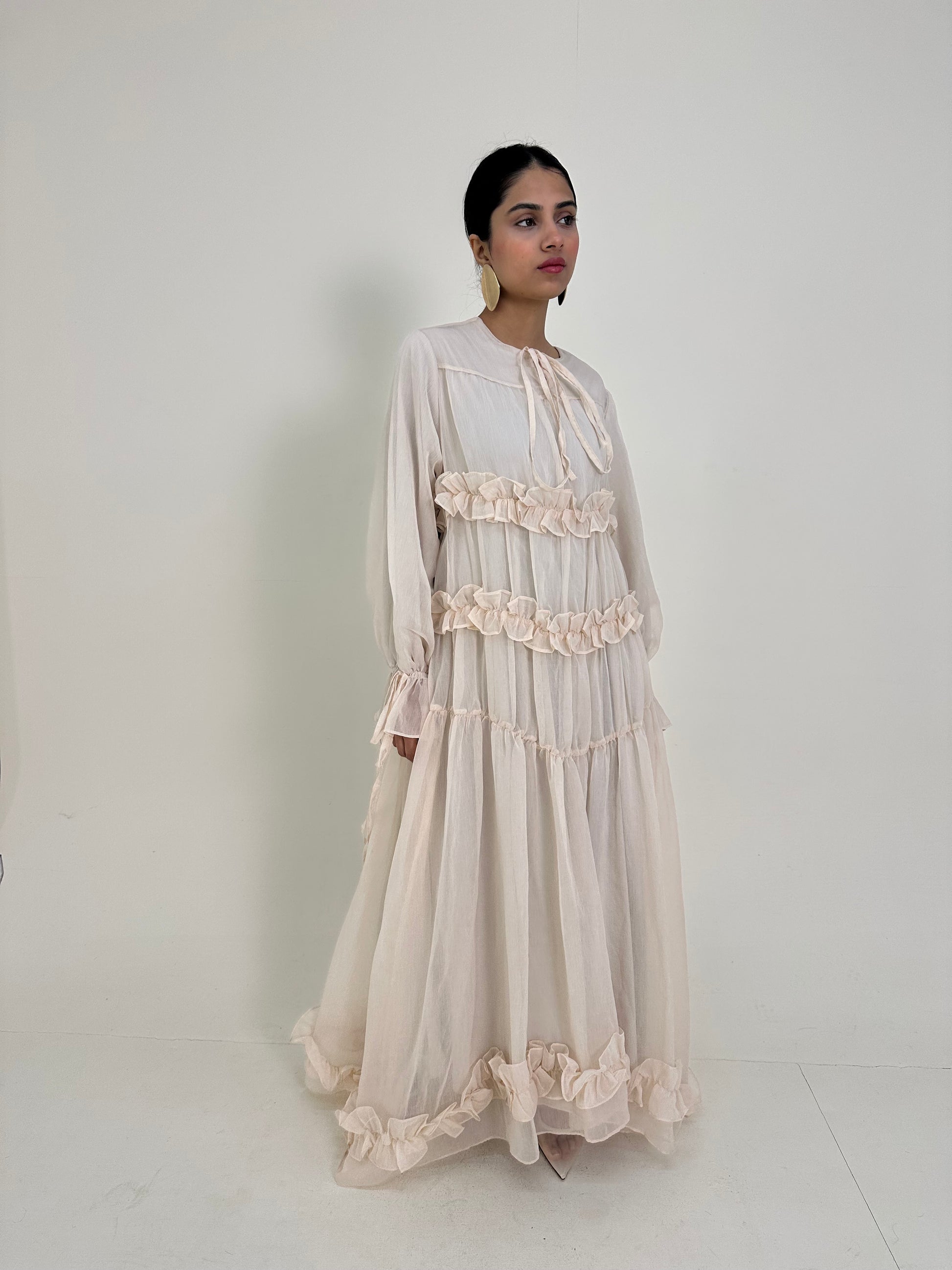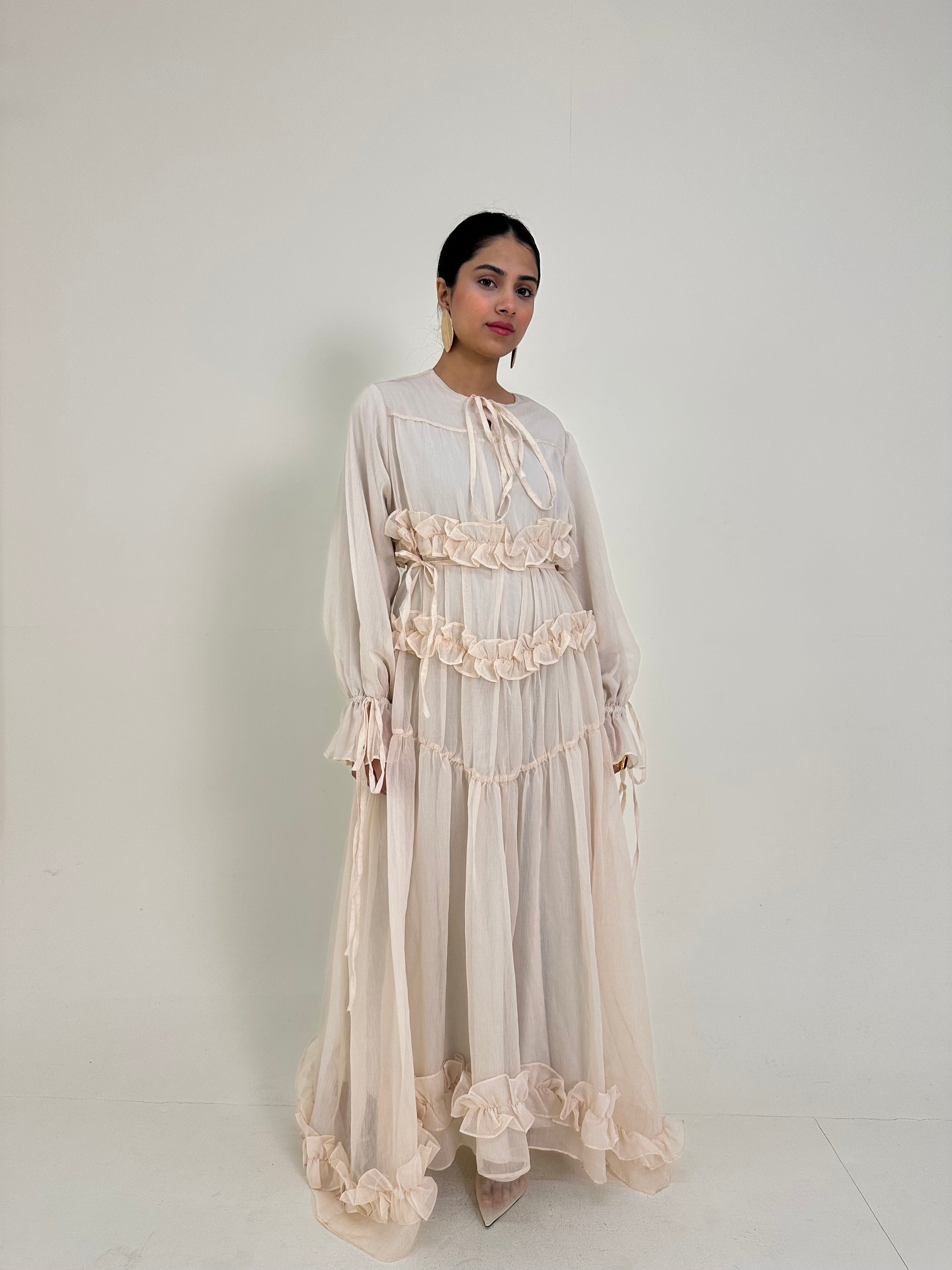 - Soft chiffon ruffle dress