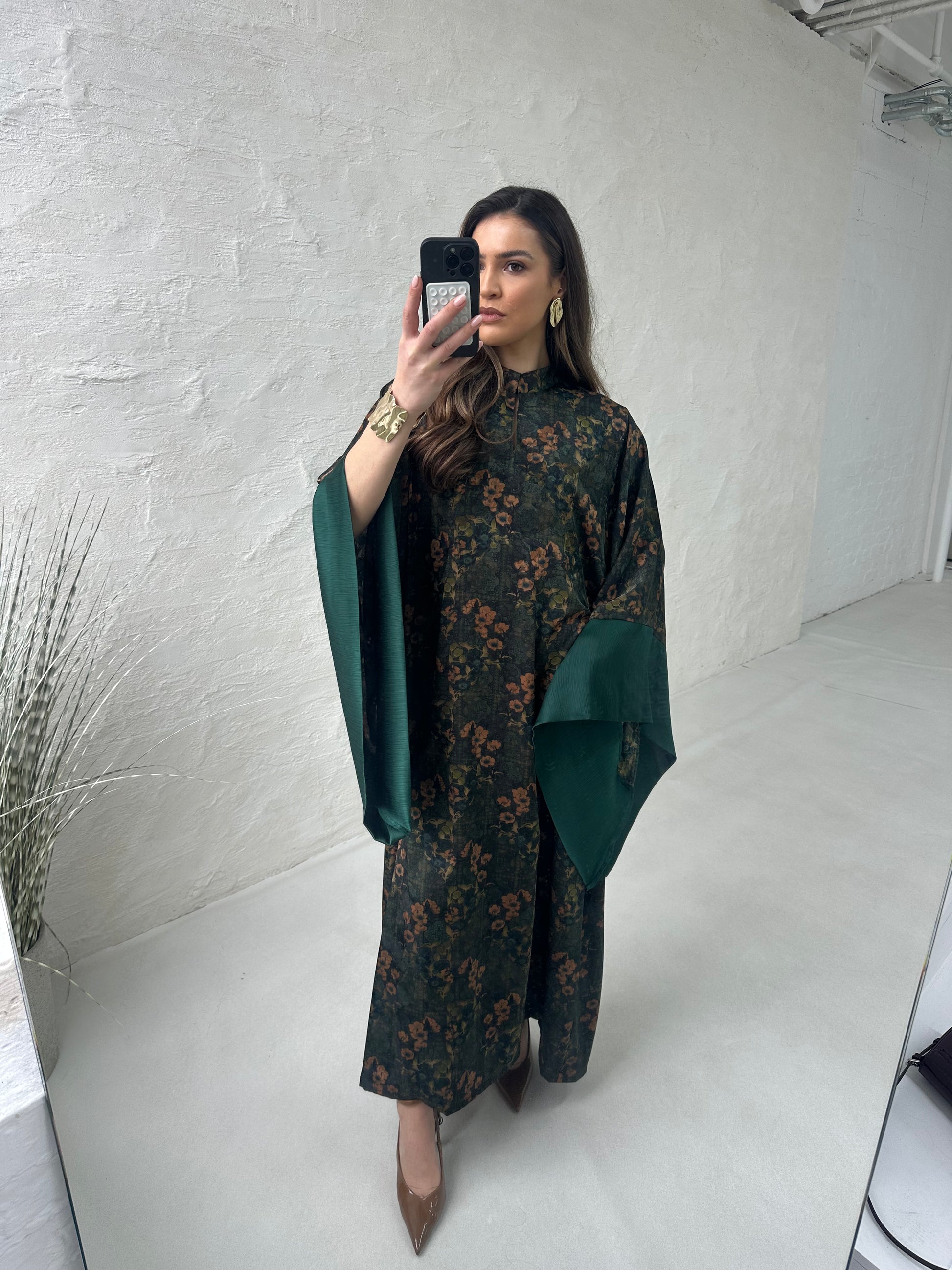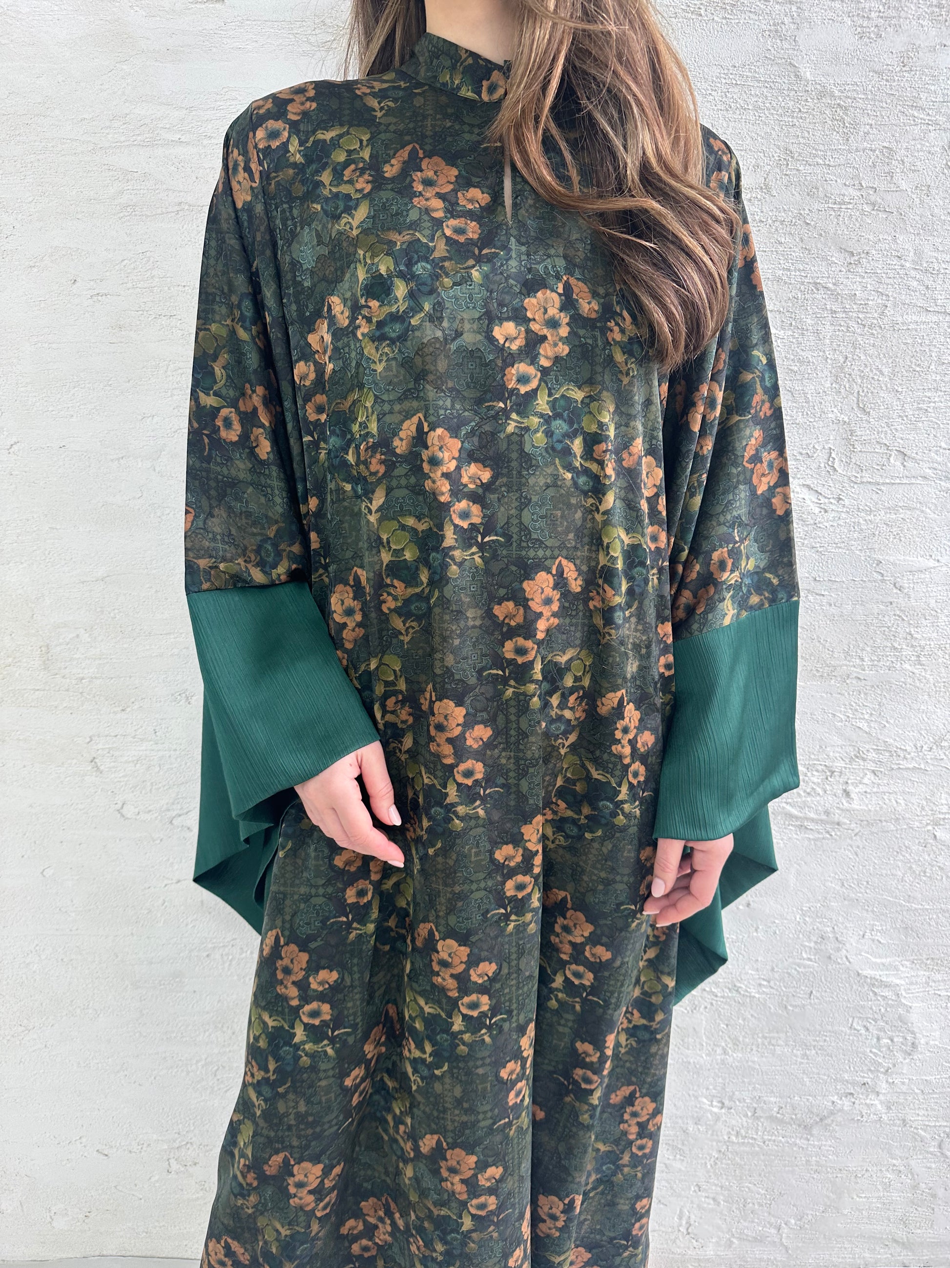 ● Batwing floral printed with contrast cuff